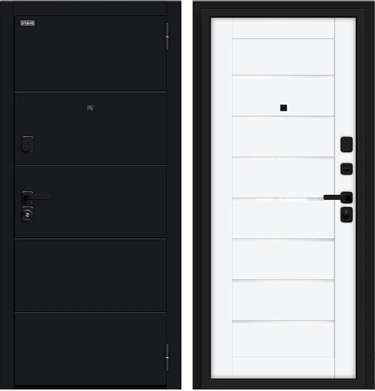 Надежная входная Дверь Браво Прайм/SBlack-Black Shell/White Silk премиум класса по цене 39 771 руб. Большая толщина стали защитит от проникновения в ваш дом, квартиру или коттедж. Используется очень качественная фурнитура: замки, цилиндры, ручки, защелки. Покрытие и отделка двери изготовлено под внимательным контролем производителя. Дверь имеет долгий срок службы и гарантию.