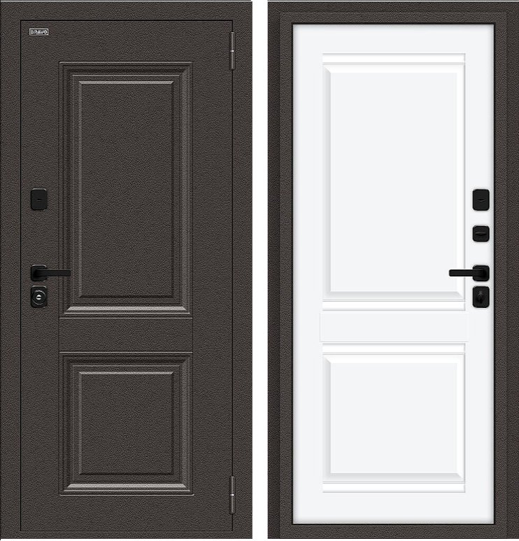Дизайнерская входная Дверь Браво Thermo Некст МФ/SBlack Старк шоколад/White Silk класса Люкс с несколькими листами стали, звукоизоляцией и теплоизоляцией. Утепленный короб и полотно защитят от сквозняков и шумов. Модель не только надежная, комфортная, защищенная и высочайшего качества, но и очень красивая! Будет отлично сочетаться с интерьером дома, квартиры или офиса. Сейчас действует выгодное предложение по цене: 57 721 руб.