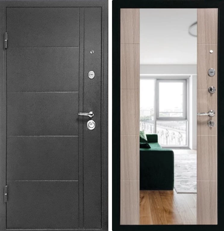 Надежная входная Дверь Эверест Зеркало Сандал Серый премиум класса по цене 33 251 руб. Большая толщина стали защитит от проникновения в ваш дом, квартиру или коттедж. Используется очень качественная фурнитура: замки, цилиндры, ручки, защелки. Покрытие и отделка двери изготовлено под внимательным контролем производителя. Дверь имеет долгий срок службы и гарантию.